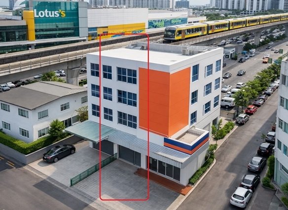 BH3957 ให้เช่าอาคารพาณิชย์ 4 ชั้น ใกล้สนามบินสุวรรณภูมิ ติดถนนใหญ่ กิ่งแก้ว 62/2 พื้นที่ใหญ่ เหมาะทำออฟฟิศ โชว์รูม คลินิก
