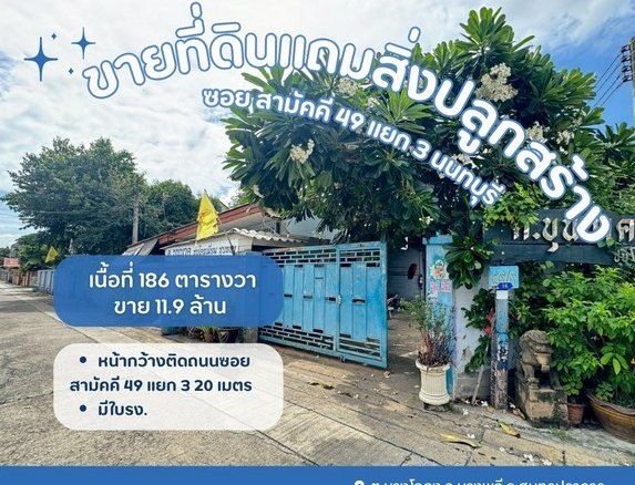 ขายที่ดินติดถนนบรมราชชนนี ที่ดินติดซอยบรม78 แถมสิ่งปลูกสร้าง ต. ศาลาธรรมสพน์ อ.ทวีวัฒนา จ.กรุงเทพฯ