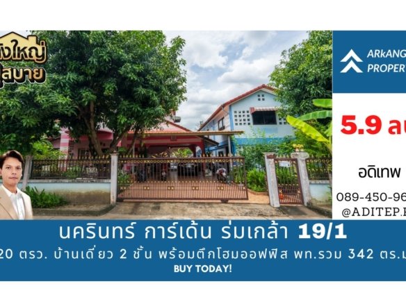 ขาย บ้านเดี่ยว 120 ตรว. หมู่บ้าน นครินทร์ การ์เด้น ร่มเกล้า 19/1 พร้อมอาคารสำนักงาน พื้นที่ใช้สอยรวม 342 ตร.ม. เหมาะเป็น Home Office