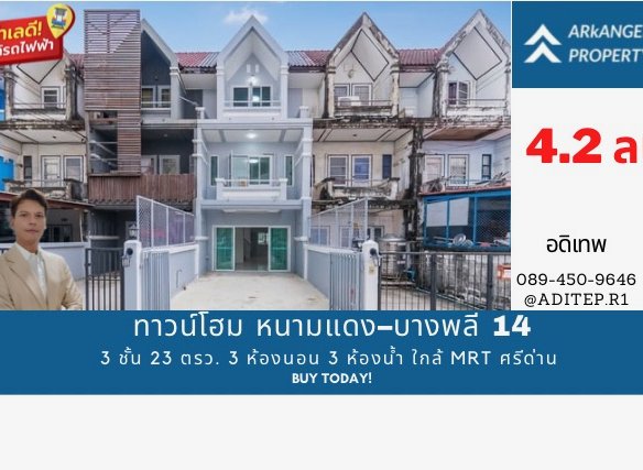 ขายทาวน์โฮม หนามแดง–บางพลี 14 รีโนเวทใหม่ทั้งหลัง สวยเหมือนบ้านใหม่ ใกล้ MRT ศรีด่าน ขนาด 3 ชั้น 23 ตรว. 3 ห้องนอน 3 ห้องน้ำ