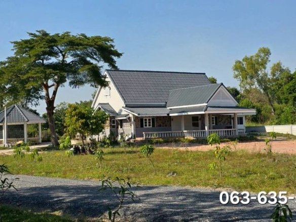 ขายบ้านสวน วิวเขาสวย ล้อมรั้วรอบพื้นที่ ต.บ้านพร้าว อ.บ้านนา จ.นครนายก มีระเบียงหน้าบ้านไว้นั่งรับลมชมวิว อายุบ้านประมาณปีกว่า