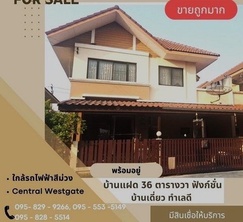 ขายถูกมากบ้านแฝด 2 ชั้น 36 วา ฟังก์ชั่นบ้านเดี่ยว หมู่บ้านชวนชม พาร์ค ใกล้สถานีรถไฟฟ้าสีม่วง และเซ็นทรัล เวสเกตต บางกรวย-ไทรน้อย นนทบุรี