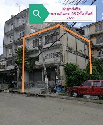 ขาย อาคารพาณิชย์ 3 ชั้นครึ่ง ด้านหลัง 2 ชั้น เนื้อที่ 70 ตารางวา ปากซอยรามอินทรา 63