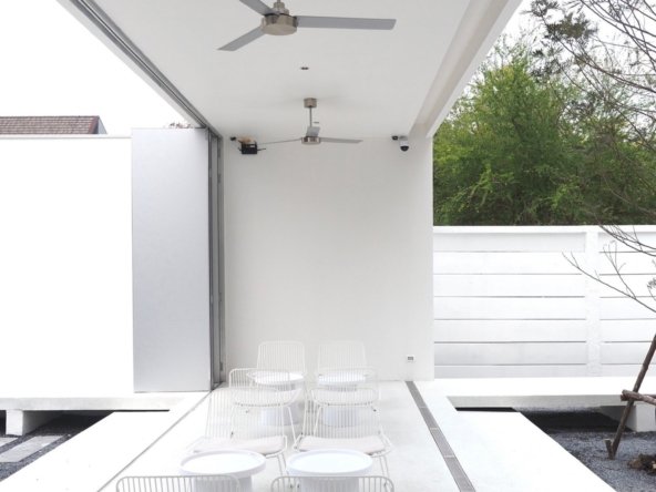 3) บ้านหันทิศใต้, มีการแต่งสวนโดยมีต้นโอลีฟ 150 ปี, ประตูบ้าน+น้ำตกตามหลักฮวงจุ้ย, มีน้ำตกด้านทิศตะวันตกเฉียงใต้ เพื่อเพิ่มพลังงานเงินทองที่มากขึ้นกับคนในบ้าน