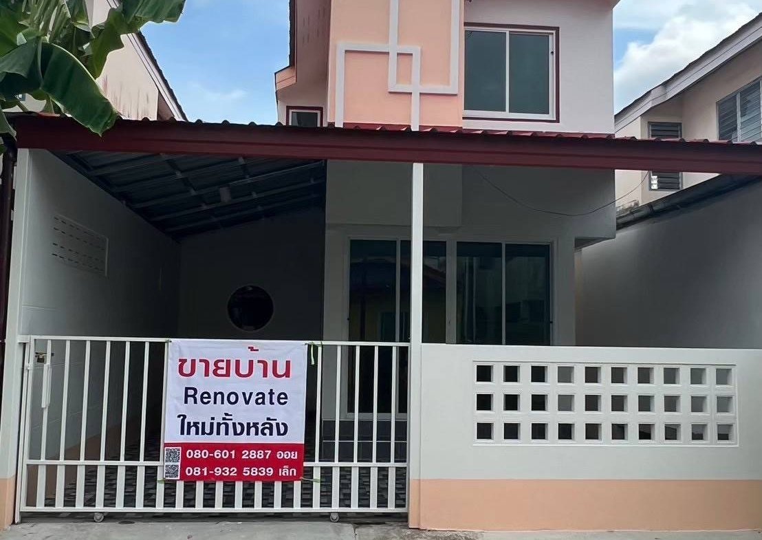 บ้านเดี่ยว 2 ชั้น 2 ห้องนอน 1 ห้องน้ำ 1ห้องครัว 1 ห้องเก็บของ 1 โรงจอดรถ ขนาดพื้นที่ 21 ตารางวา