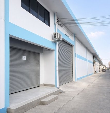 ถนนลาดยางและไฟฟ้ากำลังเข้า ถนนด้านหน้ามีหอพักและร้านค้าอาหาร