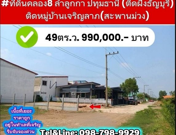 ที่ดินคลอง8 ลำลูกกา ปทุมธานี (ติดฝั่งธัญบุรี) 49ตร.ว.