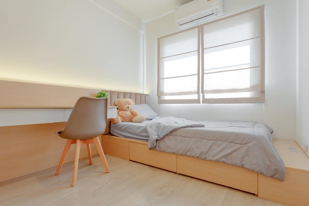 • ห้องเล็ก เตียง Single bed +ที่นอน ตู้เสื้อผ้า โต๊ะเครื่องแป้ง