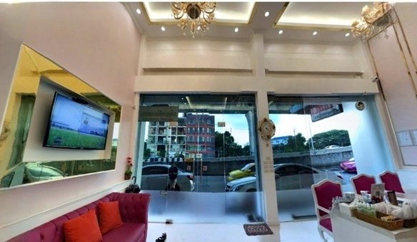 ตกแต่งบิวด์อินบางส่วนสไตล์หรู โทนสีขาวทอง ดูสะอาดและทันสมัย เหมาะสำหรับธุรกิจที่ต้องการภาพลักษณ์ระดับพรีเมียม