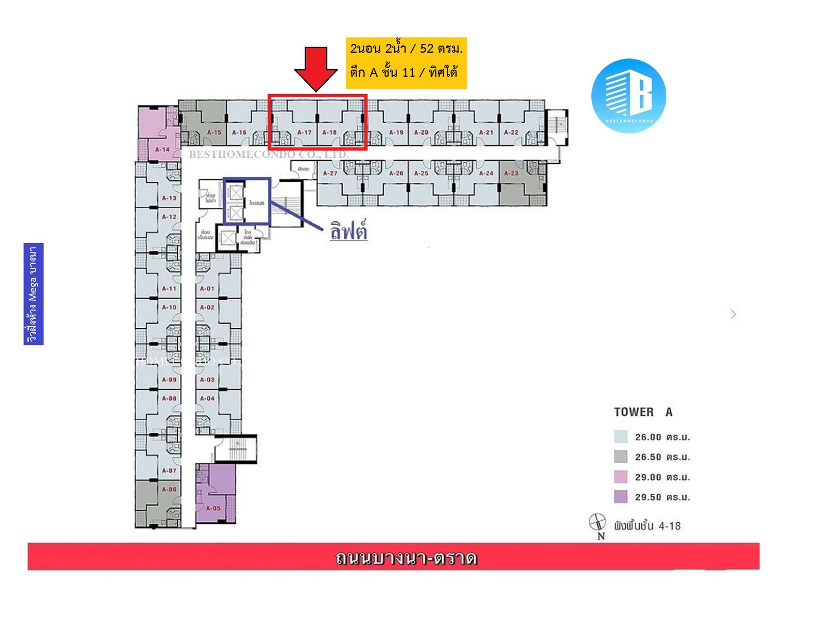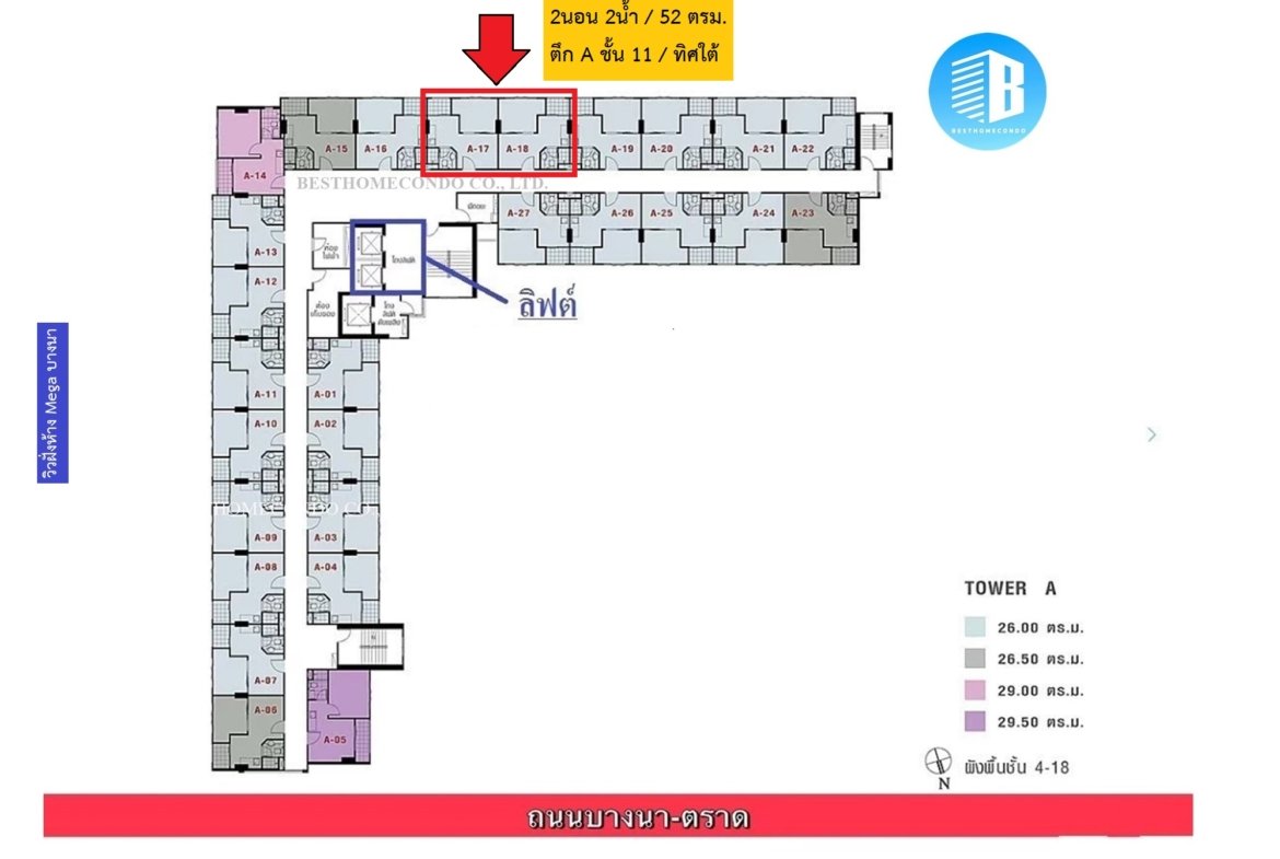 ขายคอนโด ลุมพินี เมกะซิตี้ บางนา | ห้องมุม ทิศใต้