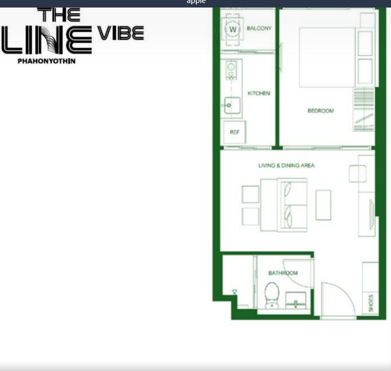 ขายดาวน์ โครงการ The Line Vibe 1 ห้องนอน 1 ห้องน้ำ 36.7ตรม. (1BM) ทิศ ใต้ ชั้น8