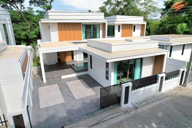 Brand new modern pool villas located in the Chaiyapruek Pattaya area only 1.5 km from Jomtien Beach. Quiet residential environment perfect for living holiday homes or daily rental pool villa business.