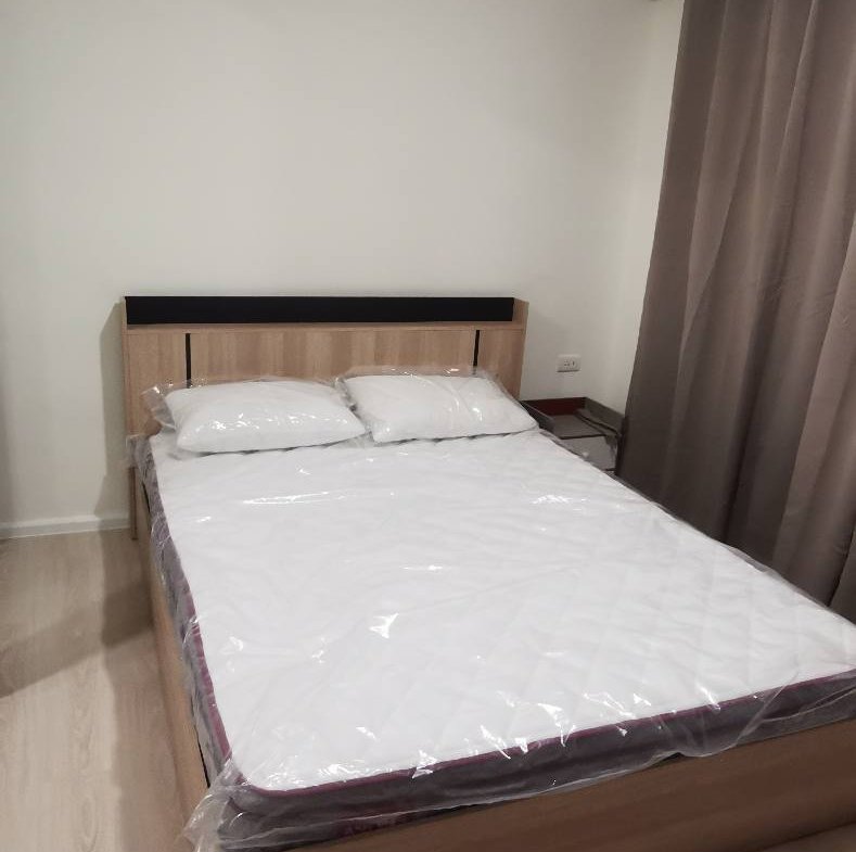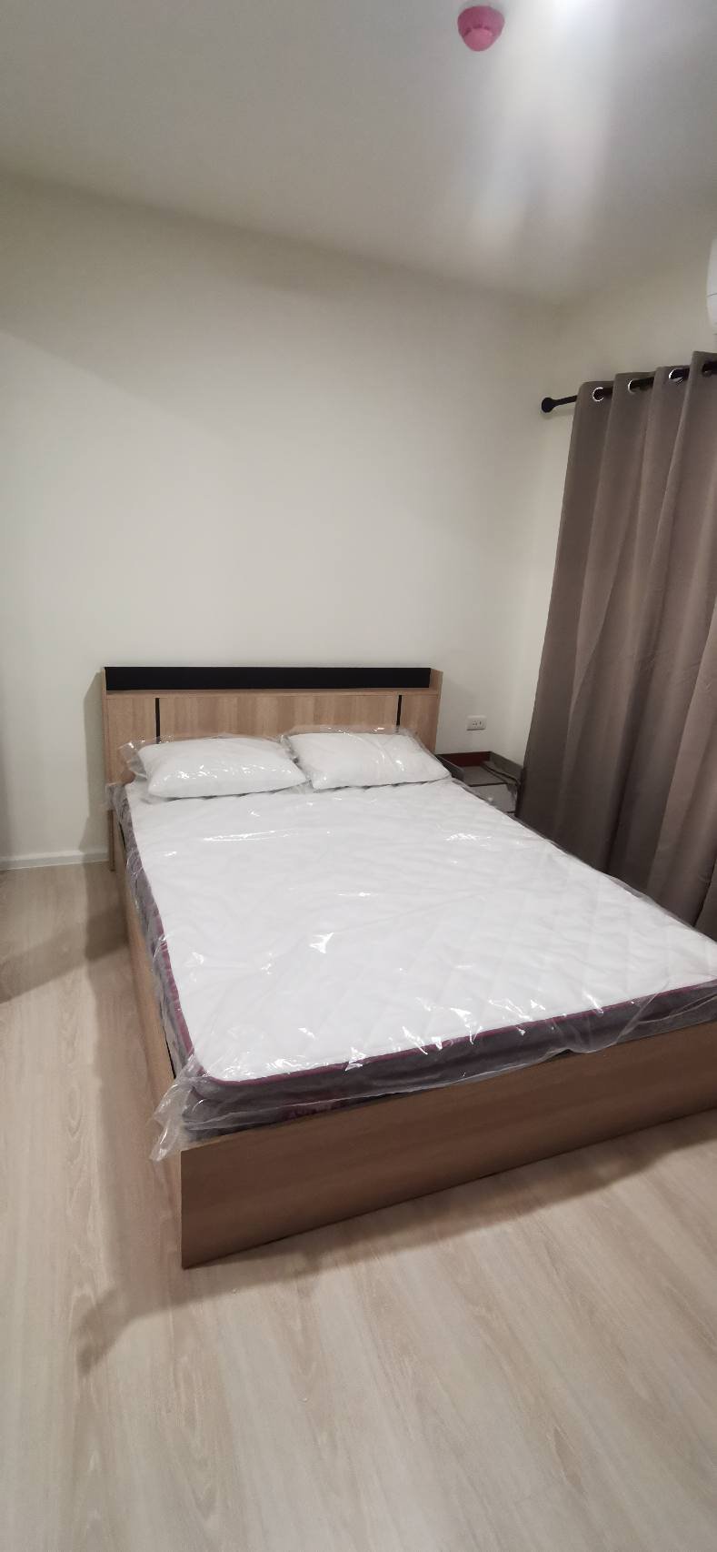 • เตียงขนาด 5 ฟุต พร้อมที่นอน เครื่องนอนและโต๊ะข้างเตียง