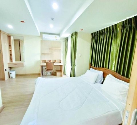ภายในห้องตกแต่งครบครัน พร้อมเฟอร์นิเจอร์ และเครื่องใช้ไฟฟ้า มีแอร์ 1 เครื่อง รองรับการอยู่อาศัยอย่างสะดวกสบาย