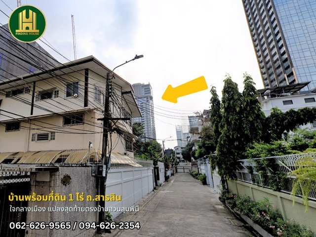 ขายบ้านพร้อมที่ดิน 1 ไร่ ทำเลดีมาก มีสิ่งปลูกสร้าง ตรงข้ามสวนลุมพินี ใจกลางเมือง