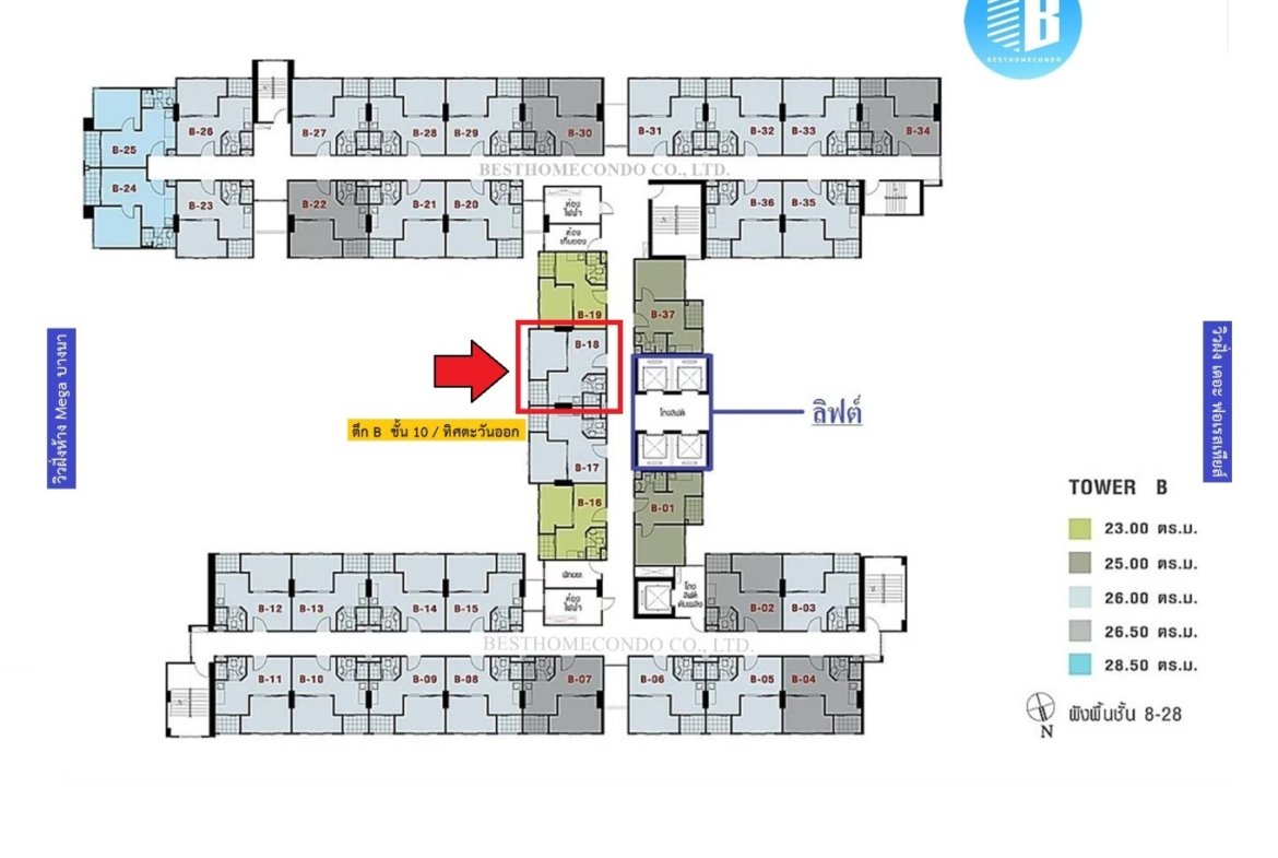 ให้เช่า คอนโด ลุมพินี เมกะซิตี้ บางนา ขนาด 26 ตร.ม. ชั้น 10 ตึก B