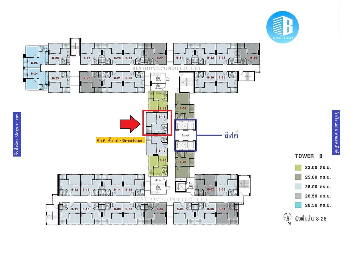 ขนาด 26 ตร.ม. ชั้น 10 ตึก B / 1 ห้องนอน 1 ห้องน้ำ