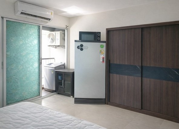 Air conditioning & full set of appliances (TV, fridge, microwave, etc.)