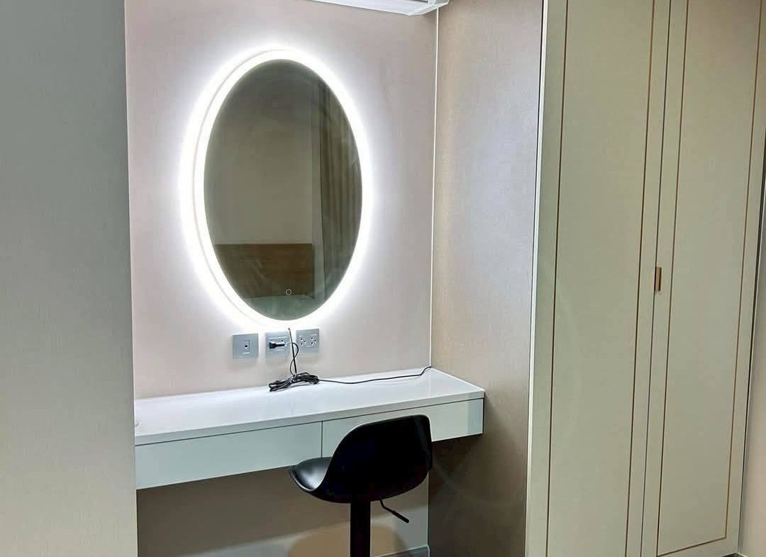 • โต๊ะเครื่องแป้งวางของได้เยอะมาก+กระจกบานใหญ่ติดไฟ บิ้วอิน