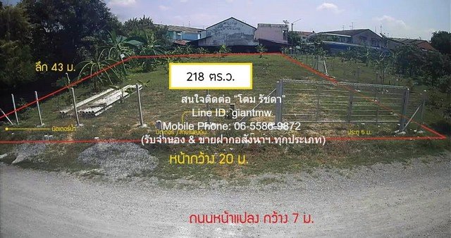 1. ที่ดินเปล่าถมแล้ว บนเนื้อที่ 218 ตร.ว. (เอกสารโฉนด) แถวพุทธมณฑลสาย 2 มีกั้นรั้วแล้ว และมีมิเตอร์น้ำ+ไฟฟ้า เรียบร้อยแล้ว (อยู่ใกล้ MRT หลักสอง)