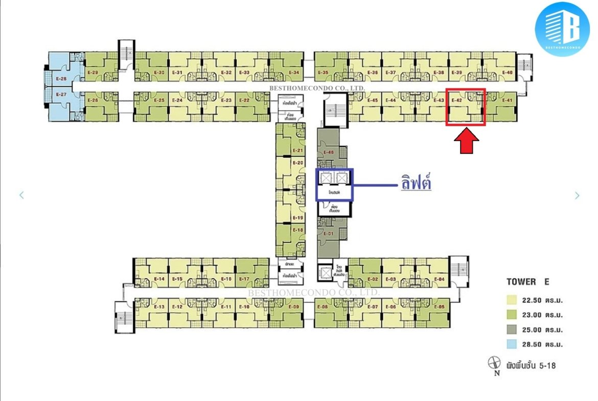 ขนาด 23 ตร.ม. ชั้น 18 ตึก E / 1 ห้องนอน 1 ห้องน้ำ