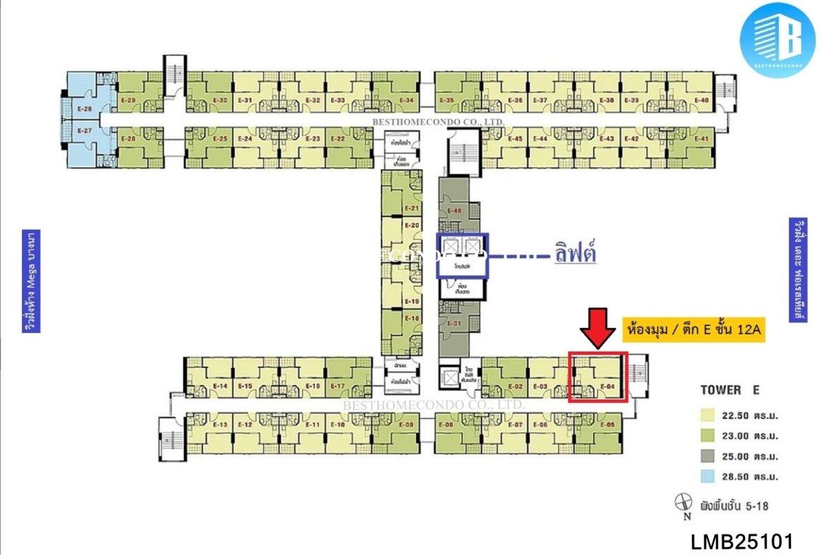ขนาด 23 ตร.ม. ตึก E ชั้น 12A / 1 ห้องนอน 1 ห้องน้ำ