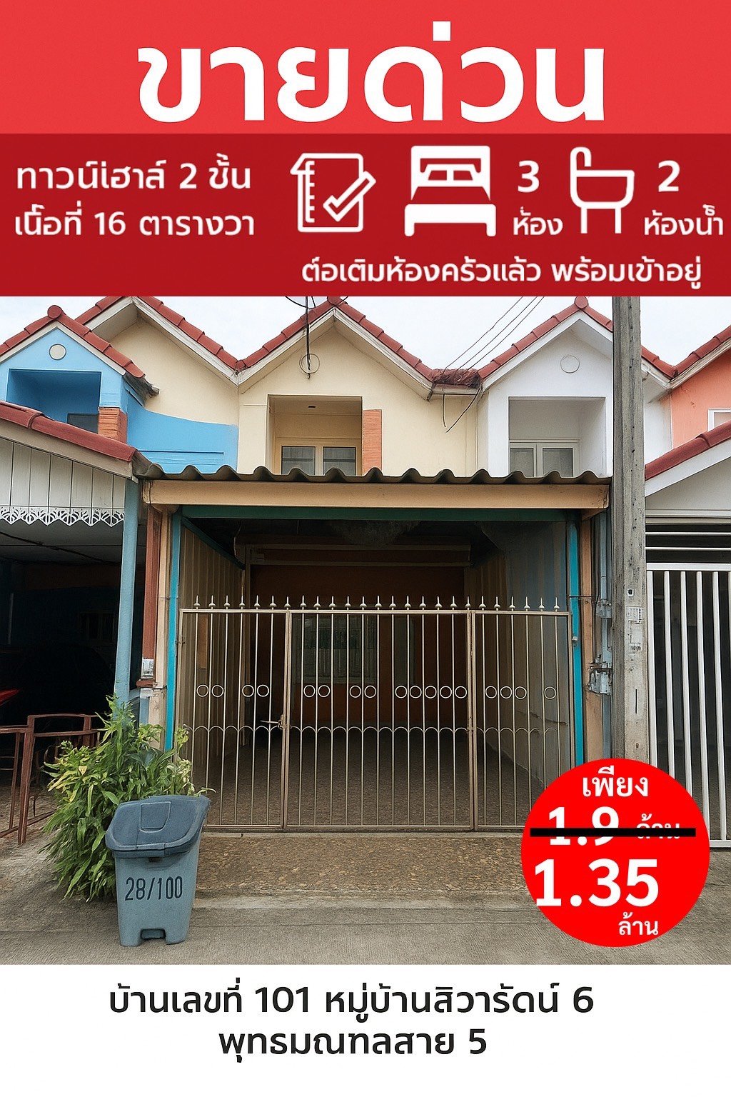 ทาวน์เฮ้าส์ 3 ชั้น ต่อเติมครัวเรียบร้อยเเล้วพร้อมใช้งาน