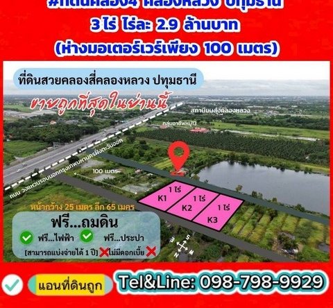 #ที่ดินคลอง4 คลองหลวง ปทุมธานี 200 ตร.ว(ถมที่ดินแล้ว) 1.4 ล้านบาท