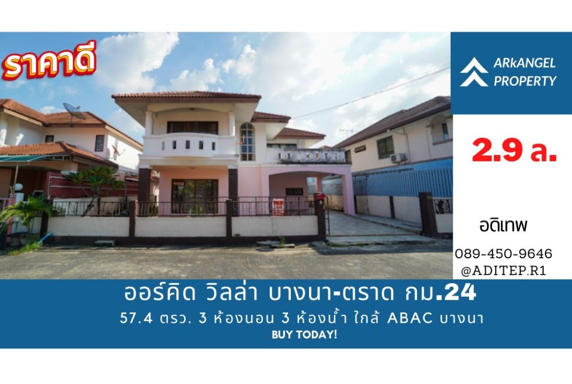 ขายบ้านเดี่ยว ออคิดวิลล่า เฟส 5 บางนา-ตราด กม.24 ขนาด 2 ชั้น 57.4 ตรว. 3 ห้องนอน 3 ห้องน้ำ ใกล้ ABAC บางนา