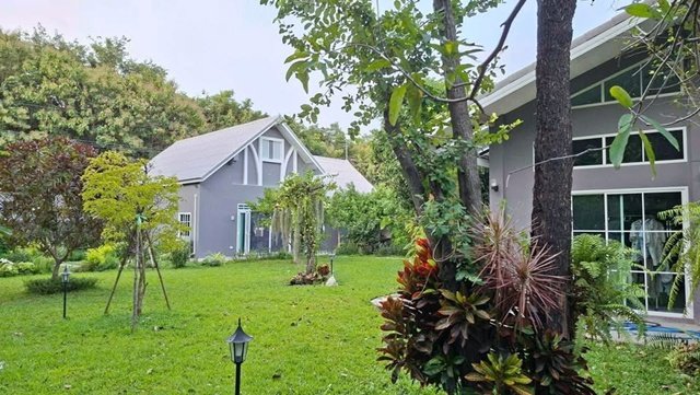 Nikhom Gateway intersection Wat Kutchi 100 m. for rent luxurious single-story house large house 101sq.wa. 301sq.m. quiet atmosphere shady 2bed 3bath 17,998B-M. fully furnished electrical appliances convenient parking suitable for a retirement home One Night Gateway Market 2.1 km. Phanom Sarakham – Paet Riu