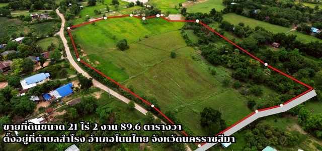ขายที่ดินเปล่า อ.โนนไทย จ.นครราชสีมา – 21 ไร่ 2 งาน 89.6 ตร.ว. – ติดถนน น้ำไฟเข้าถึง ใกล้มอเตอร์เวย์ – ราคาไร่ละ 350,000 บาท