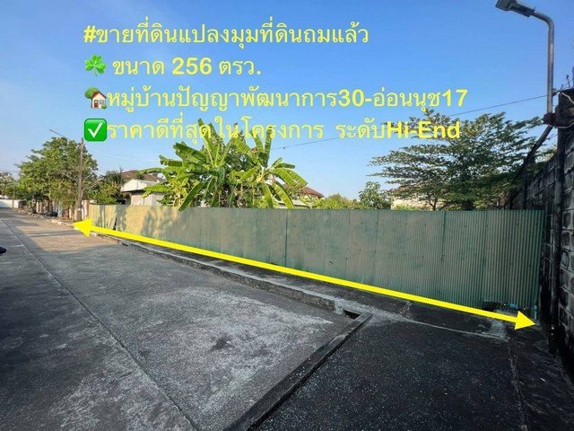 #ขายที่ดินแปลงใหญ่ที่สวย ถมแล้ว ขนาด 256 ตรว.ราคาถูกสุดๆ #โครงการหมู่บ้านปัญญาพัฒนาการ17 #ใกล้ทองหล่อเอกมัย #ที่ดินแปลงมุม อยู่ซอยต้นๆของโครงการ