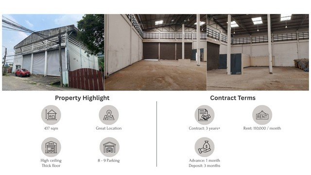 • -โกดัง437ตร.ม.เหมาะสำหรับยิมฟิตเนสโชว์รูมสินค้าร้านอาหารขนาดใหญ่ย่านแจ้งวัฒนะหลักสี่